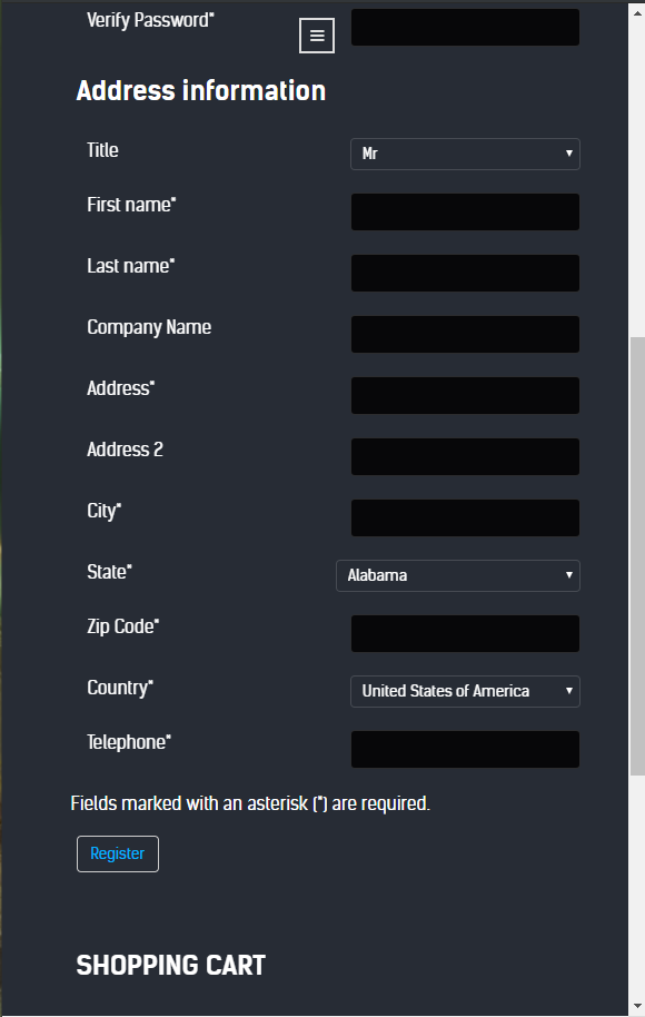 Desktop Small - This is me bringing the web browser screen to be thin, replicating what it "should" look like on a mobile screen as the template and programs (Joomla! and HikaSHop) are supposed to be responsive.