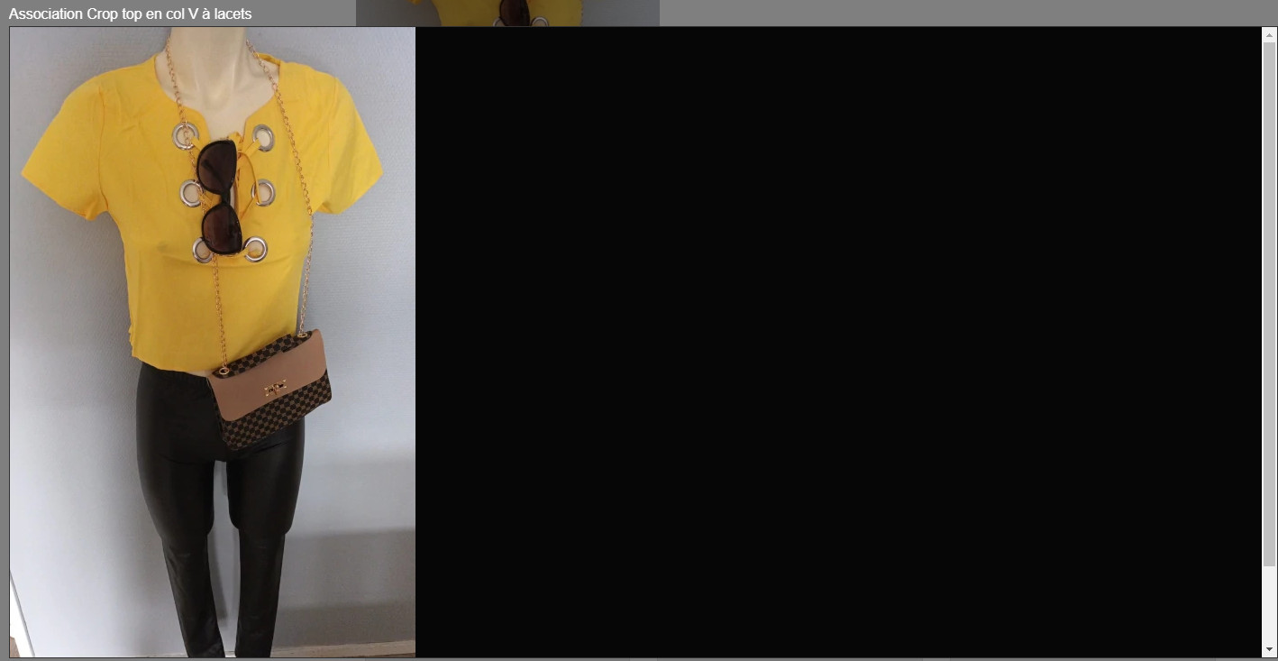 Quand je clique sur une des miniatures, l'image s'agrandit et s'affiche à gauche d'un rectangle dont la partie droite est noire (voir pj)