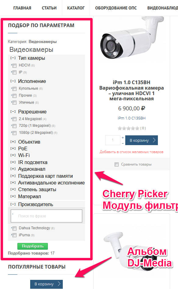 Дополнительно использую в качестве фильтра - модуль Cherry Picker