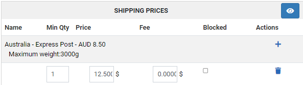 Then, in each product, you'll have an extra "shipping prices" area where you can enter the shipping price for the current product.