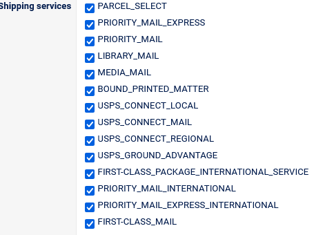 - Priority Mail, Ground Advantage, and First-Class Mail selected.