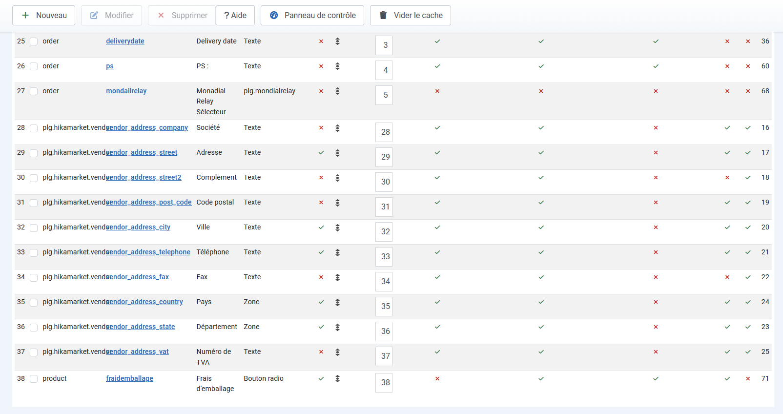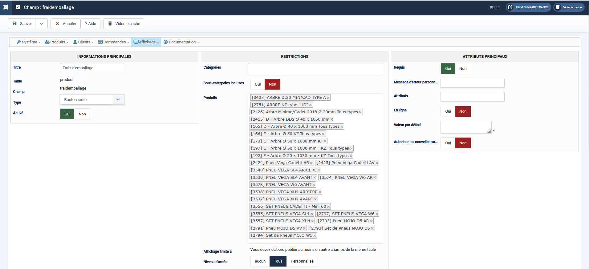 Ensuite, dans chaque produit, vous pouvez sélectionner oui ou non en fonction.