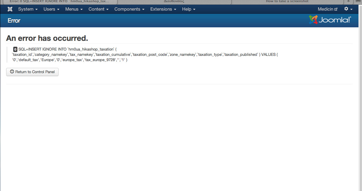 I can't create tax rules. When I tried, an error message appeared (after the click on the save button):