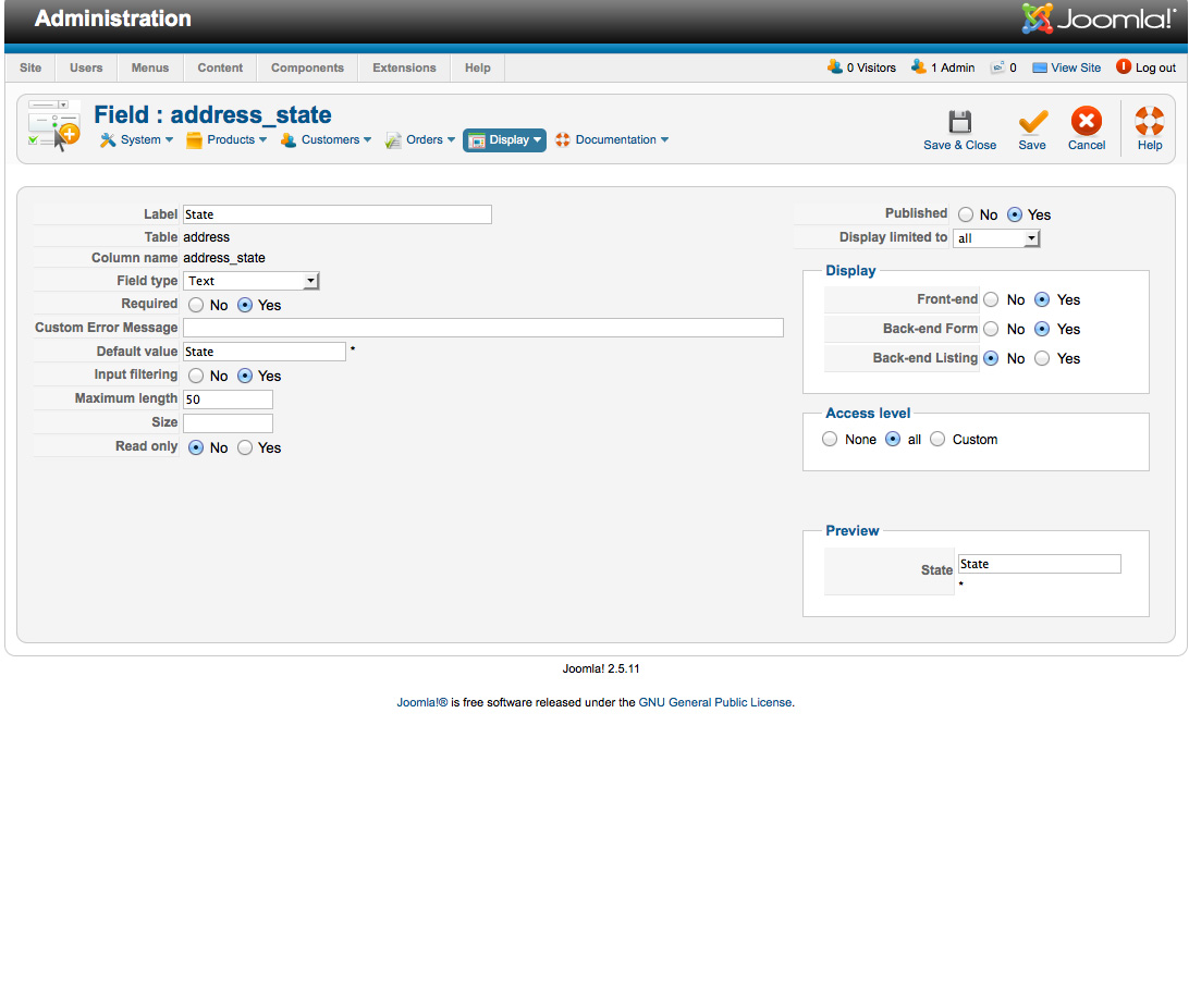 Can you show me how did you configured your "address_state" custom field through some screenshots via "Hikashop->Display->Custom fields" ?