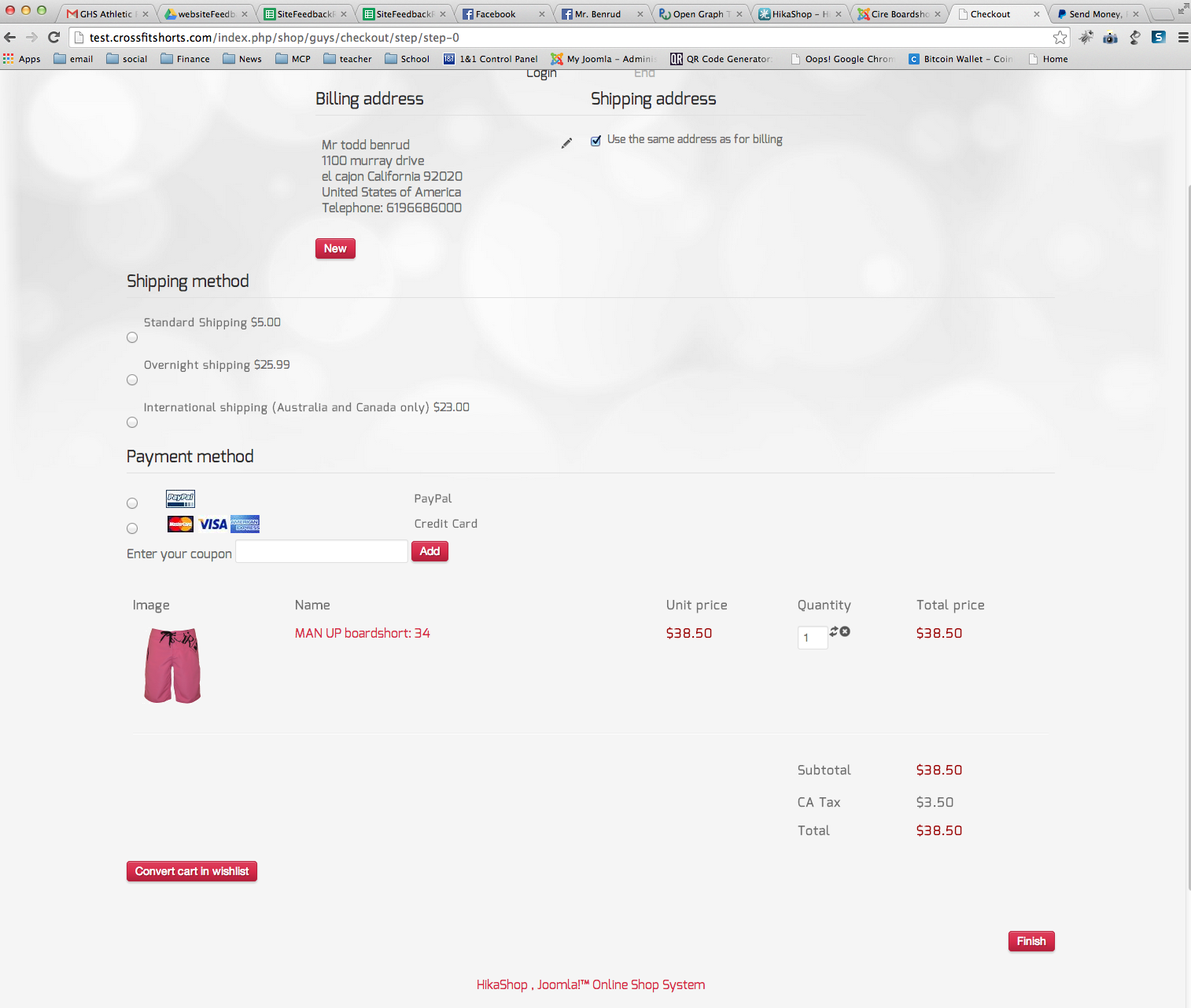 the product costs $35.00 but HikaShop is displaying it as $38.50. During checkout HikaShop is outlining costs as
