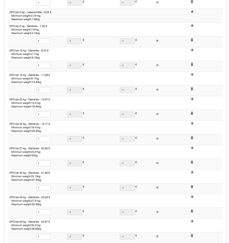 b) On the second try, I worked with all the shipping modules with all the shipping limits. In this case I blocked all the shipping method that didn't correspond to the product tax (shipping_list.jpg)