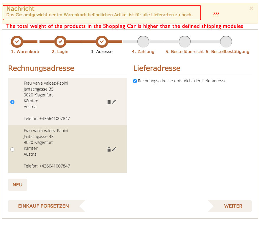 This is when everything went wrong. No shipping was shown anymore (no_shipping_shown.jpg). When I went ahead with the order, I couldn’t oder at all (cannot_buy.jpg)