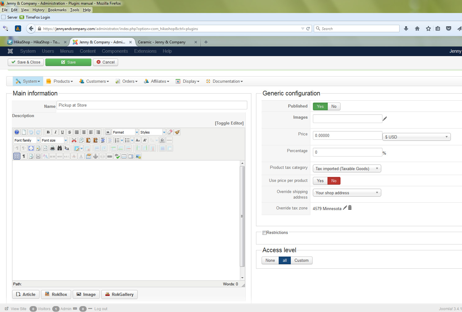 The only goal is to have shipping addresses in minnesota and in-store pickup in minnesota have tax applied.