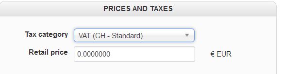 The settings for this tax category are: Zone: Switzerland, Tax Rate: VAT_CH (8%), Customer Type: All customer types (see all settings for this tax category in picture 3)