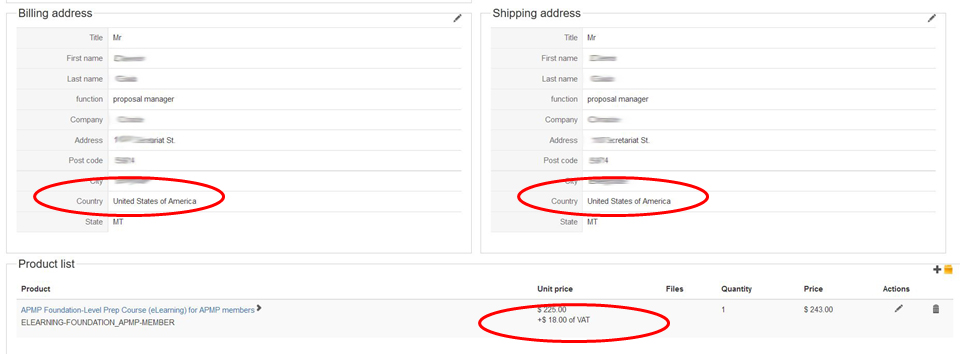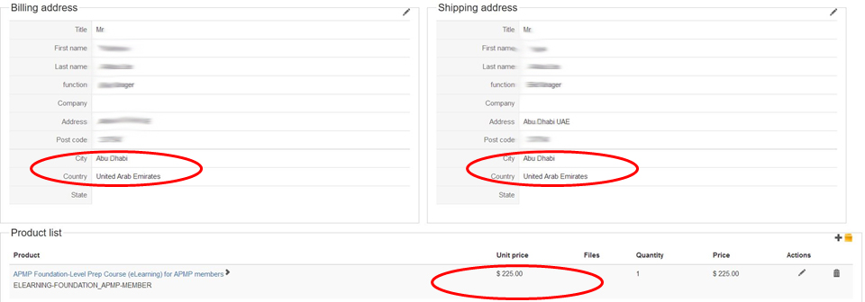 In an another example (picture 5), the same product is (correctly) not taxed, this time the customer is based in the Emirates. Both addresses are there.