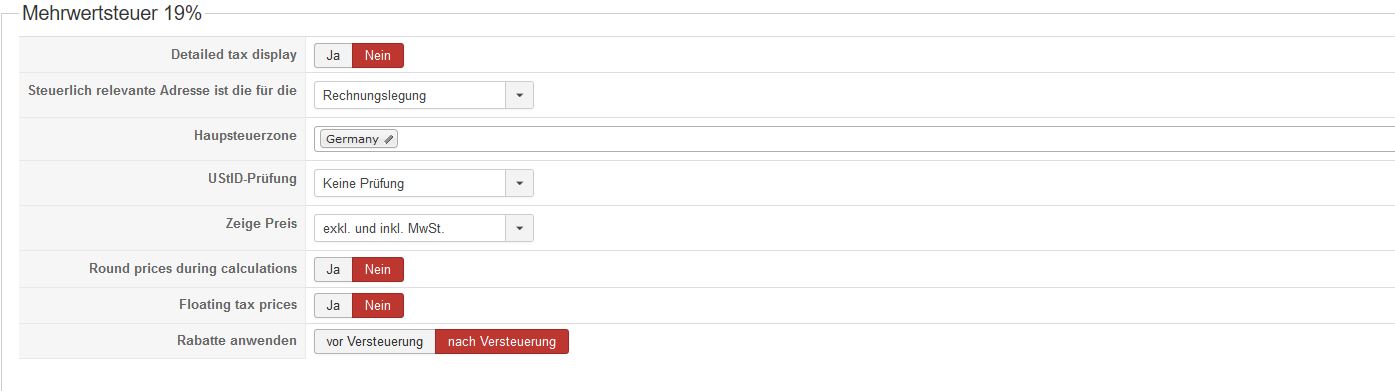 - Taxes main configuration settings (in Main tab HikaShop Configuration)