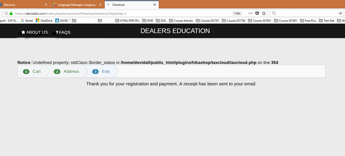 The notice message with the TaxCloud plugin is not really an error. Just a check is missing to avoid the notice message but it doesn't change the behavior of the plugin and normally, the notices aren't supposed to be displayed on a live website for security reasons.