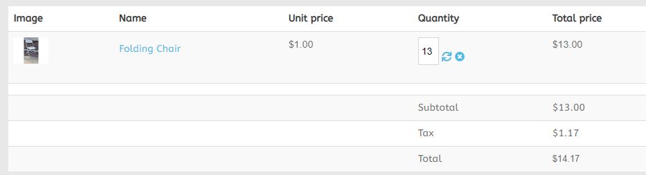 tax for all the order: 0.09 * 13 = 1.17