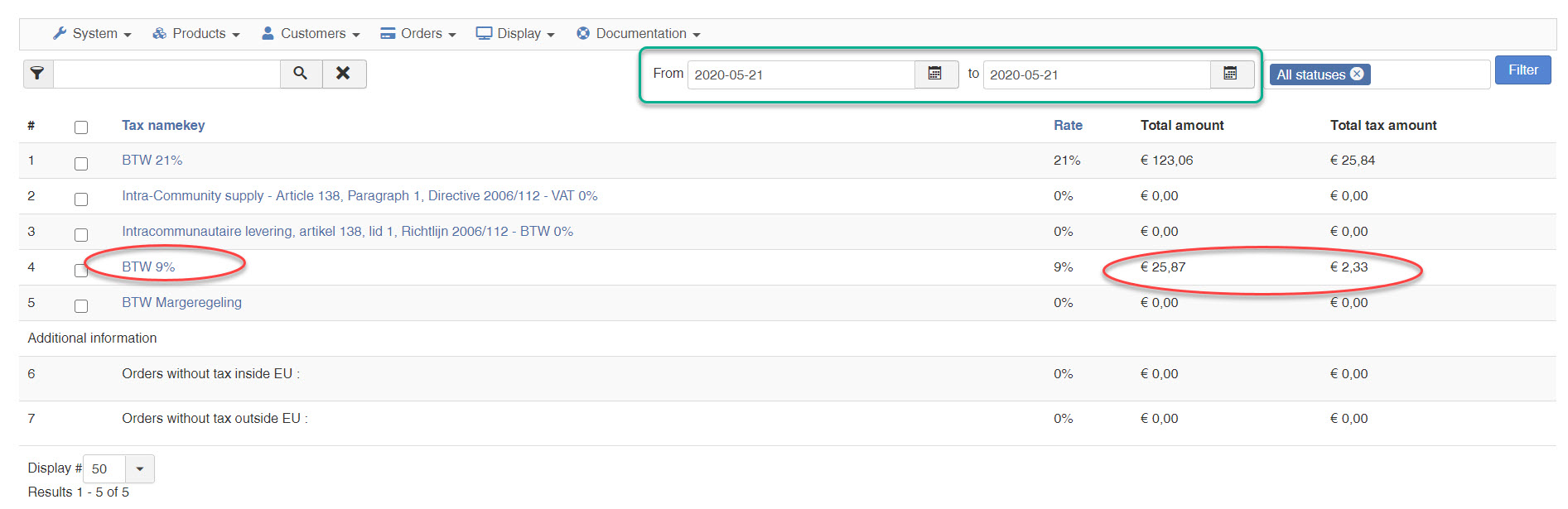 The day's before and after 21 May we have no orders with 9% TAX.