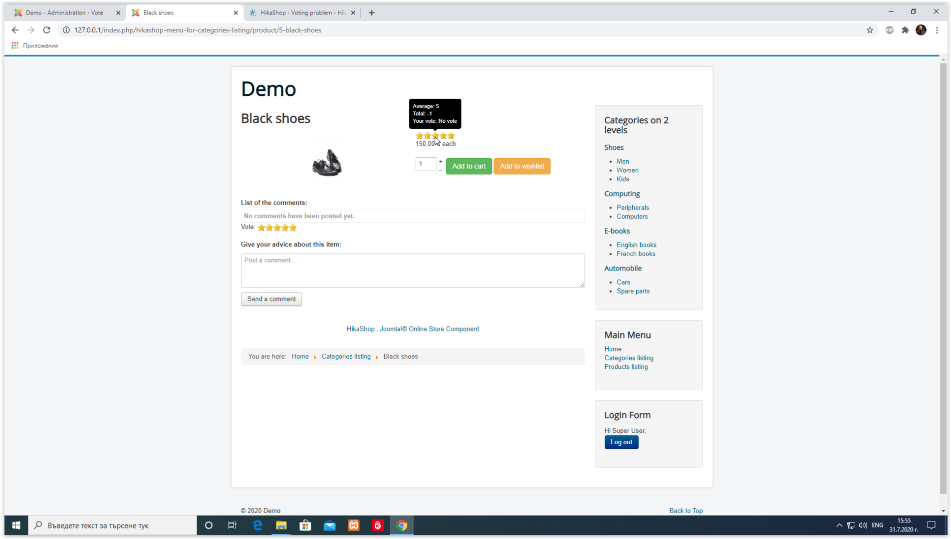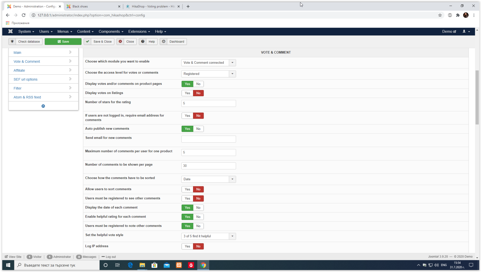 Joomla 3.9.20 / HikaShop Business 4.3.0 [2007271529] / PHP 7.3.20 / XAMPP for Windows